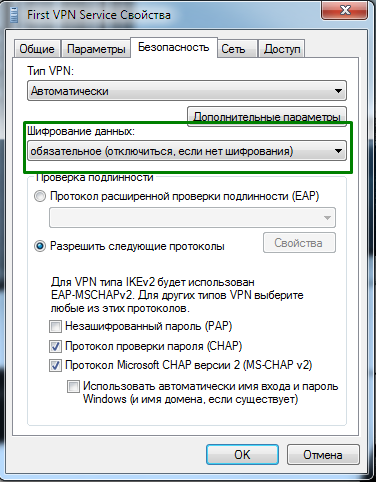 12. В разделе "Безопасность" выбираем всё так, как указано на скрине, нажимаем "ОК" и подключаемся к VPN.