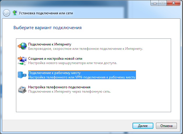 3. Выбираем "Подключение к рабочему месту"