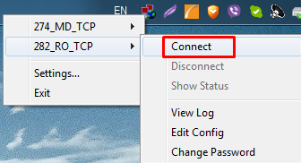 7. На появившейся в трее иконке кликаем правой кнопкой мышки, выбираем нужную нам подписку и выбираем "Connect"