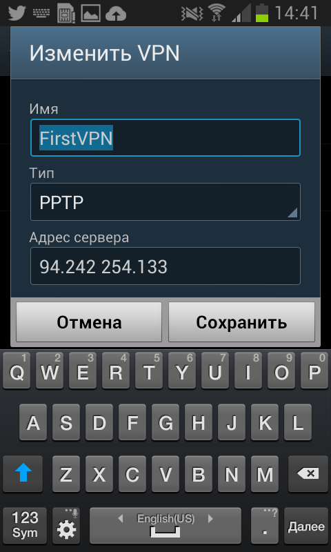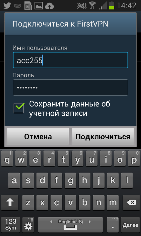 4. Выбираем созданное VPN подключение и вводим "Имя пользователя" и "Пароль", которые вы получите после того, как оформите и купите подписку на нашем сайте.