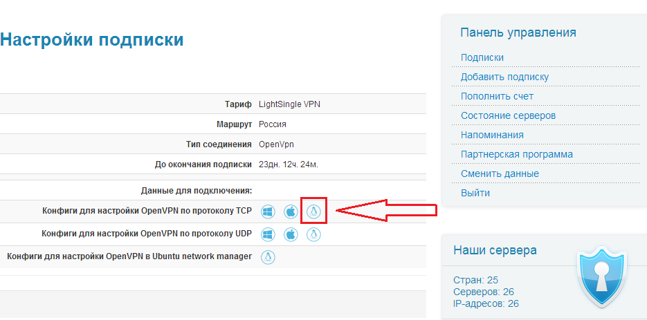 Далее после установки необходимо скачать конфиги для настройки OpenVPN из Кабенета пользователя